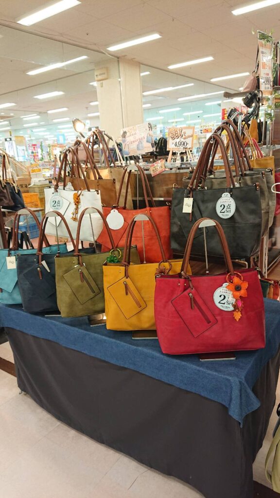 3月からメロディーに入社しました伊藤です。今は出荷、催事の搬出、搬入、販売の手伝いをしています。PU、革小物などを見ていますが、方数の多さや、カラーの多さなどをみて驚いています。販売は初めてなので商品を覚えて、お客様にうまく勧められるよう勉強していきます。