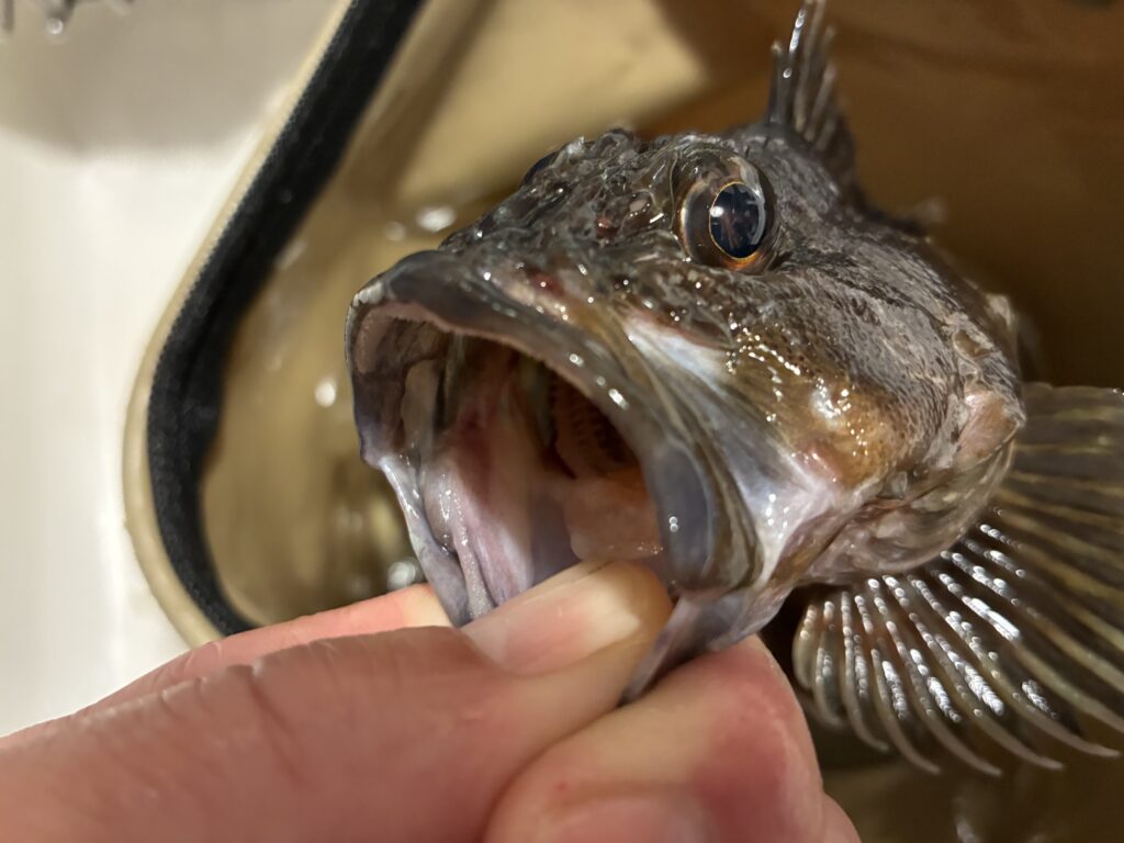 大きなお口の真冬に釣れるお魚ちゃんです。極寒でも元気に相手をしてくれるたけのこメバル(上)カサゴ(下)です。唐揚げにすると骨まで美味しい絶品の魚ですが、余り流通しないので釣りをする人にしか食べる機会がないかな。刺身で食べると身がブリッブリです。カサゴでおおよそ20cmUpのなかなかのサイズ。